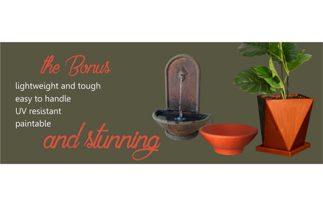 SCHAUMSTEIN garden articles are unique in South Africa. The products are manufactured from rigid closed cell polyurethane foam. The products are very light (density about 5% of that of concrete) which simplifies the handling and logistics of the products.